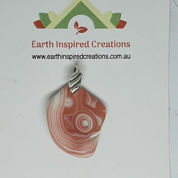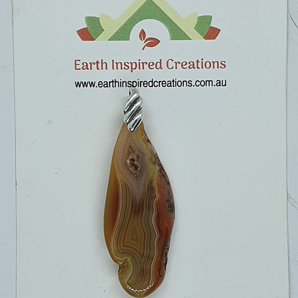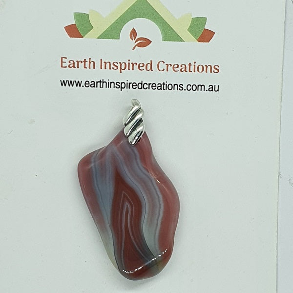 Natural free form Australian Agate pendants from North West Queensland.  A large variety of colours, bands, spots and patterns are an excellent example of the uniqueness of mother natures DNA or fingerprint.
