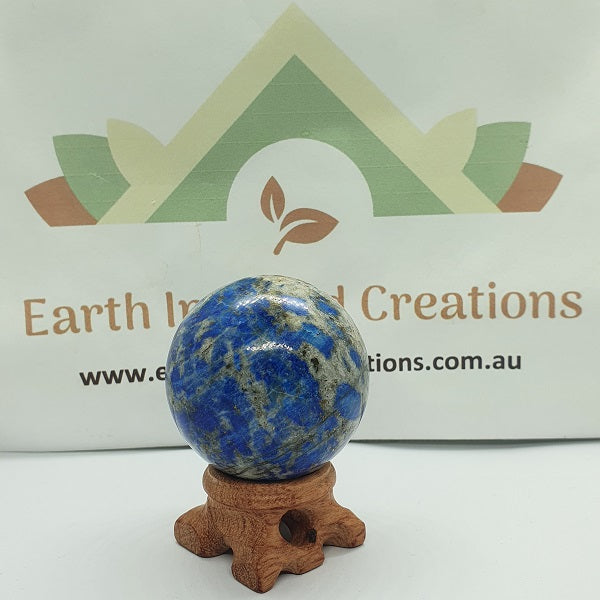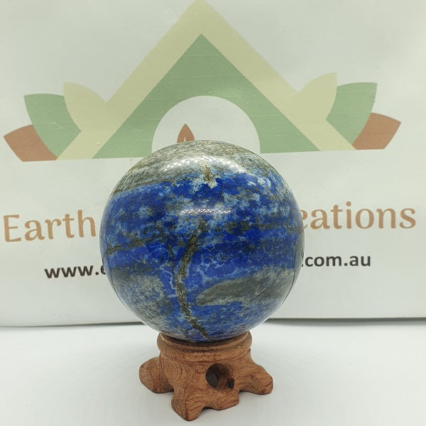 Lapis Lazuli contains Lazurite, the main constituent, mottled with white calcite and beautiful brassy pyrite.